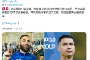 下一篇: 电讯报:本泽马去新月后和C罗开玩笑“我涨了薪 而且又要夺冠了”