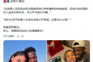 下一篇: 维尼修斯前女友:这些黑人球员总是抱怨种族歧视,但他们却总是和白人金发女郎约会